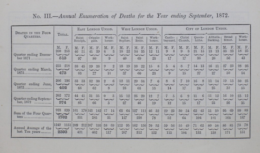 Credit: [Report of the Medical Officer of Health for London, City of]. Source: Wellcome Collection.