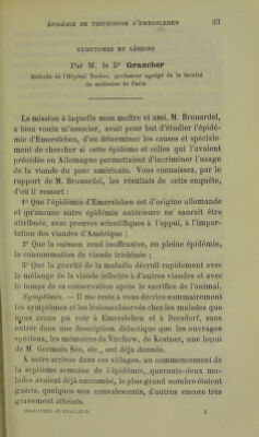 L'épidémie de trichinose d'Emersleben en septembre, octobre et novembre 1883 / par P. Brouardel, J. Grancher.