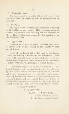 [Report 1920] / Medical Officer of Health, Romsey R.D.C.