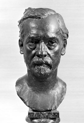 M0020085: Bronze bust of Louis Pasteur by Alexis Rudier, after Aronson: front view