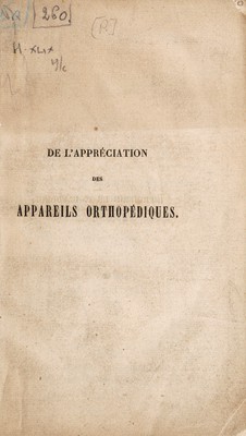 De l'appréciation des appareils orthopédiques. Thèse. Présentée au concours pour la Chaire de médecine opératoire de la Faculté de médecine de Paris, 28 janvier 1841 / par E. Chassaignac.