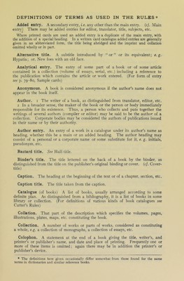 Credit: Cataloguing rules: author and title entries / compiled by committees of the American library association of the Library association. Source: Wellcome Collection.
