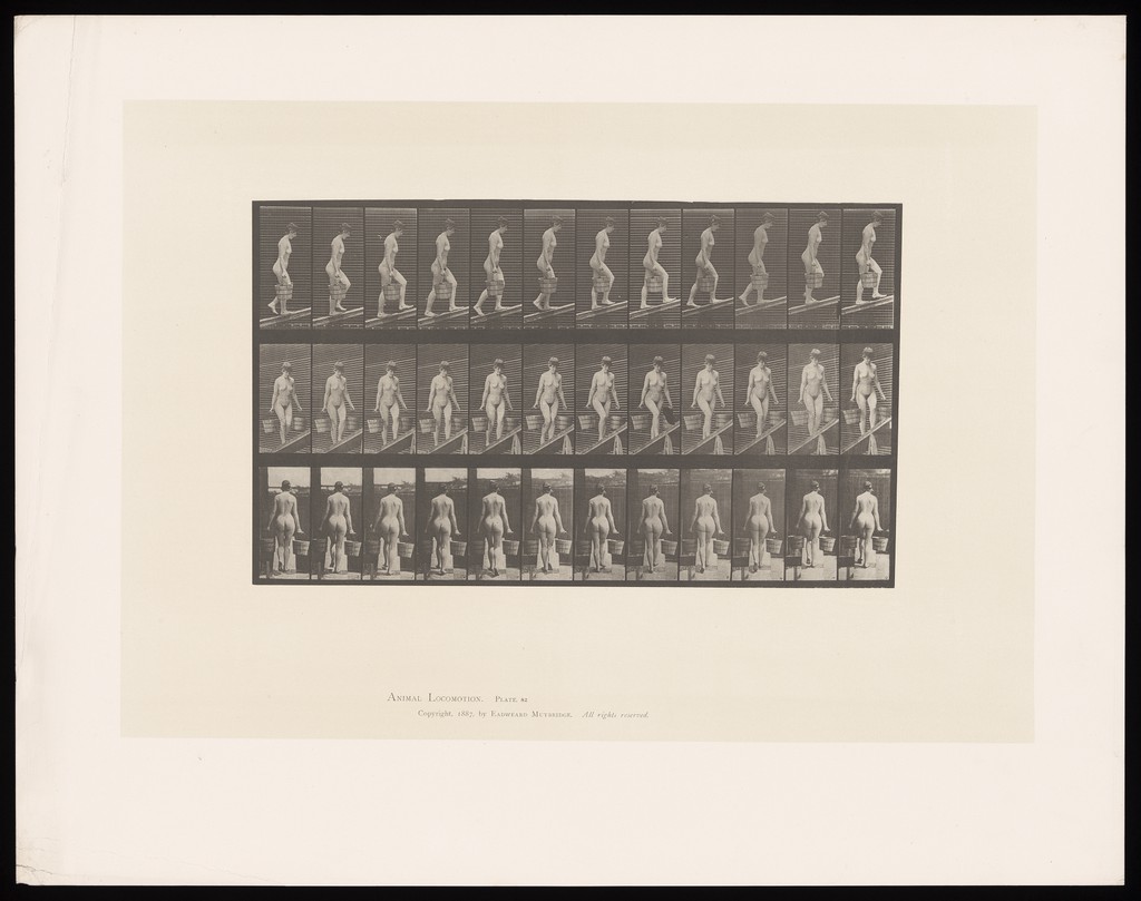 Credit: A naked woman walking up a slope with a bucket in each hand. Collotype after Eadweard Muybridge, 1887. Source: Wellcome Collection.