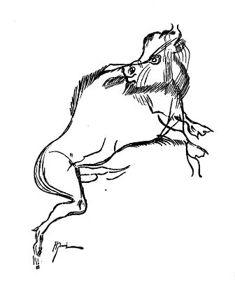 Credit: M0015175: Illustration of a hybrid figure of bison-man incised on cave wall at La Grotte des Trois-Freres, Ariege, France. Source: Wellcome Collection.
