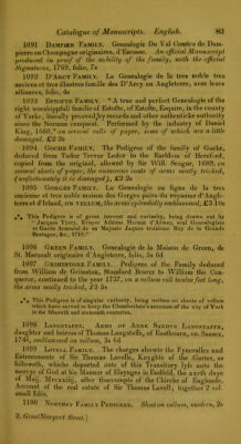 Credit: Catalogue of a collection of manuscripts, including several of interest and value, in the Oriental, Greek, Latin, Italian, Spanish, French, German, Flemish, and English languages : autograph letters of many celebrated persons : and an assemblage of books connected with the study of manuscripts and ancient writings : on sale, at the prices affixed, by Thomas Rodd, 2 Great Newport Street, London. Source: Wellcome Collection.