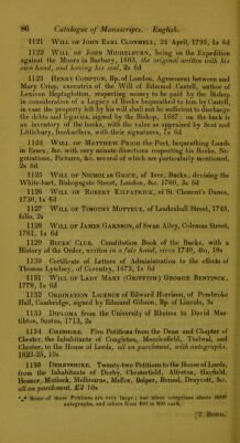 Catalogue of a collection of manuscripts, including several of interest and value, in the Oriental, Greek, Latin, Italian, Spanish, French, German, Flemish, and English languages : autograph letters of many celebrated persons : and an assemblage of books connected with the study of manuscripts and ancient writings : on sale, at the prices affixed, by Thomas Rodd, 2 Great Newport Street, London.