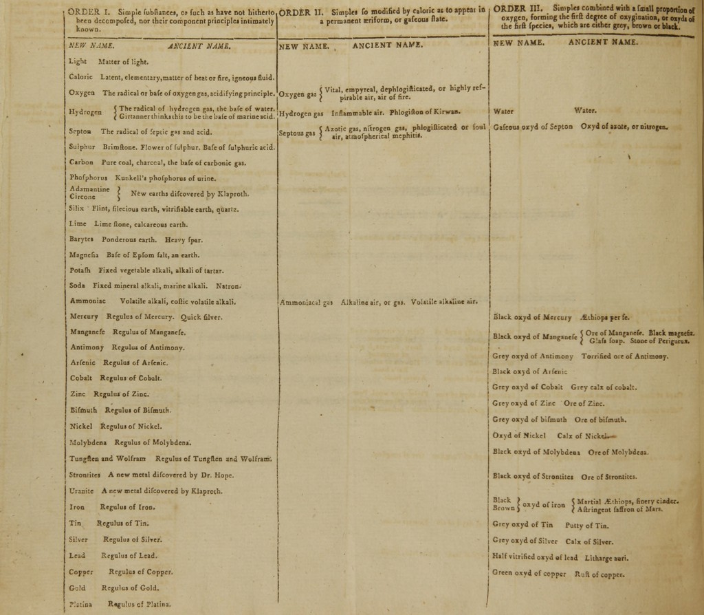 Credit: A new nomenclature of chemistry : proposed by Messrs. de Morveau, Lavoisier, Berthollet and Fourcroy ; with additions and improvements / by Lyman Spalding, M.B. ; lecturer of chemistry in Dartmouth University. Source: Wellcome Collection.