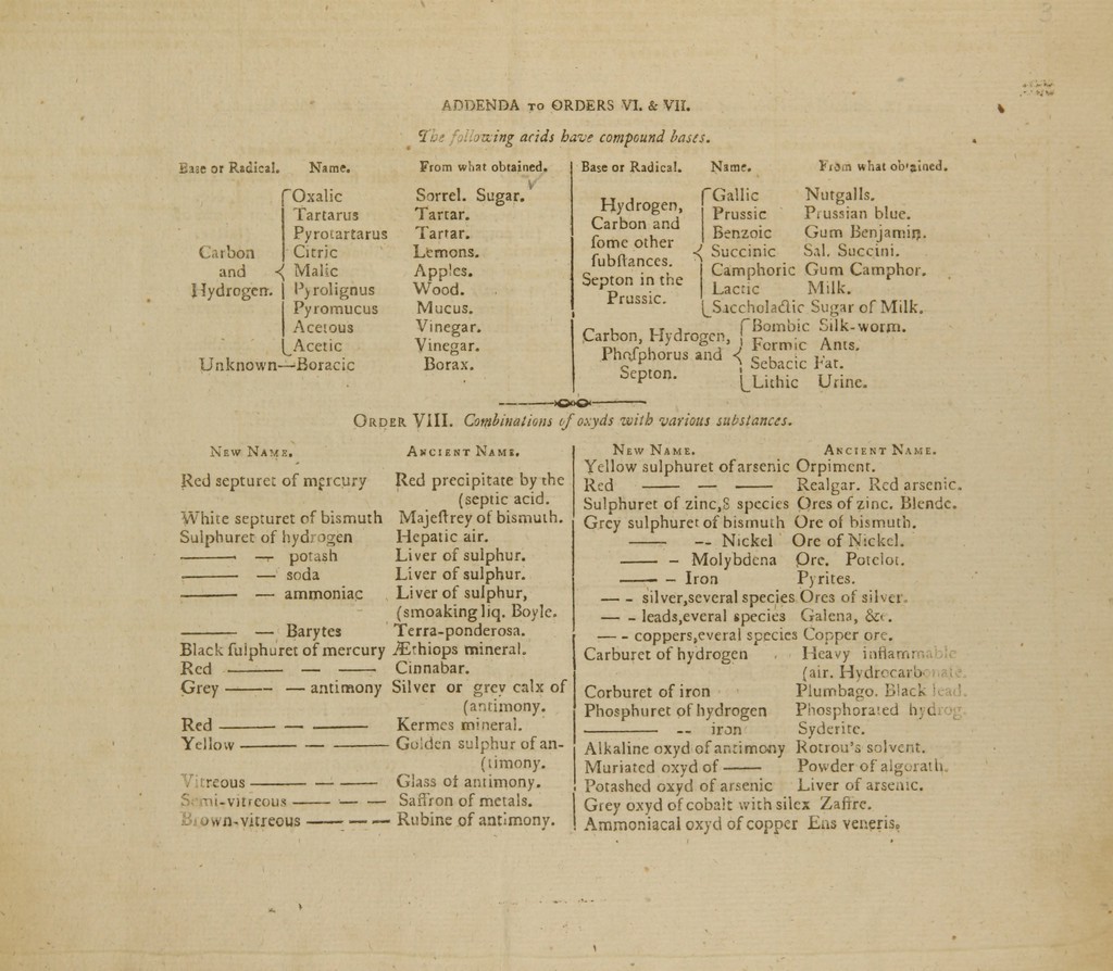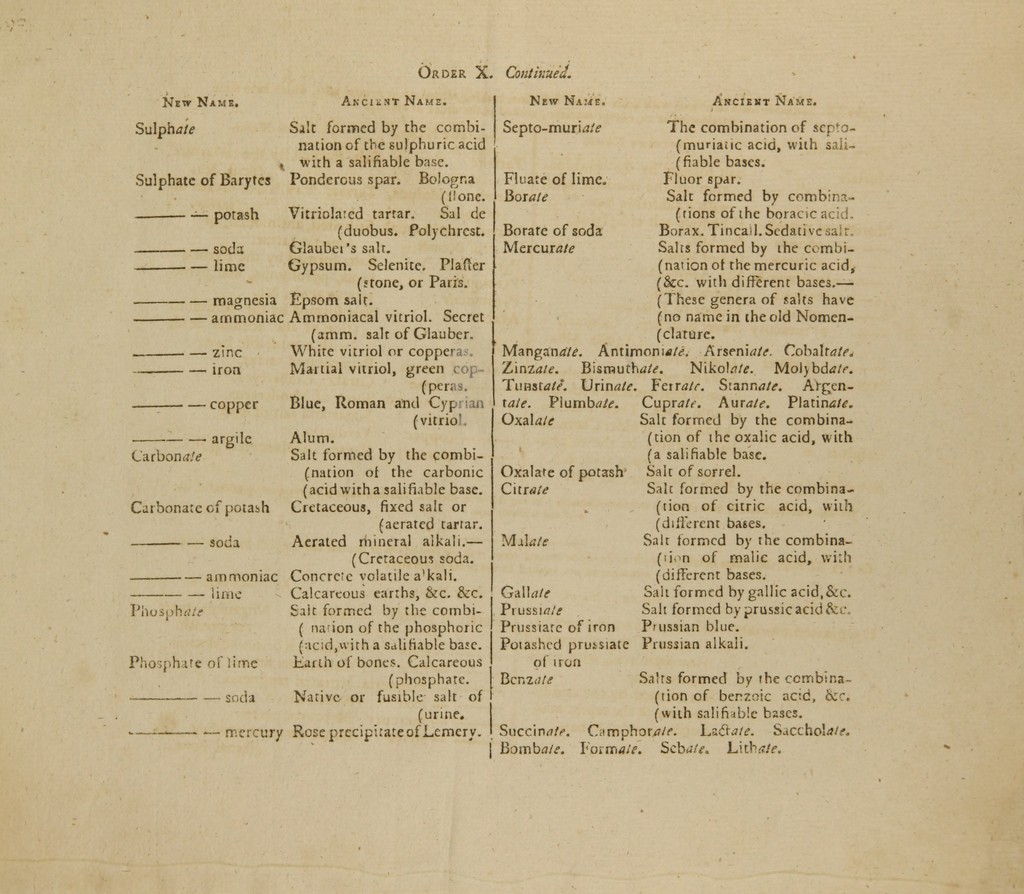 Credit: A new nomenclature of chemistry : proposed by Messrs. de Morveau, Lavoisier, Berthollet and Fourcroy ; with additions and improvements / by Lyman Spalding, M.B. ; lecturer of chemistry in Dartmouth University. Source: Wellcome Collection.