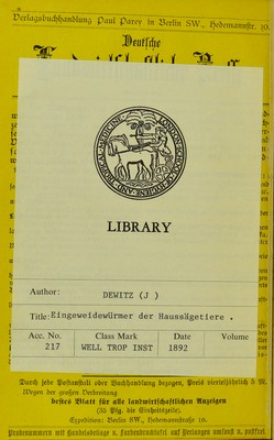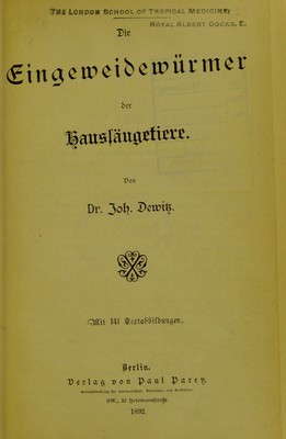Die Eingeweidewürmer der Haussäugetiere / von Joh. Dewitz.