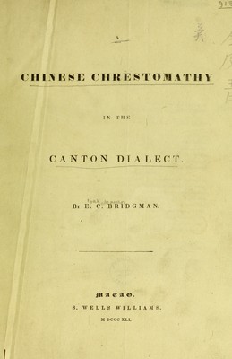 A Chinese chrestomathy in the Canton dialect / [E.C. Bridgman].
