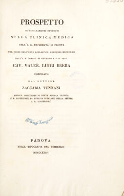 Prospetto de' risultamenti ottenuti nella clinica medica dell'Università di Padova ... / dal Sig. V.L. Brera ... [1815-17, 1821-25].