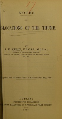 Credit: Notes on dislocations of the thumb / by J.E. Kelly. Source: Wellcome Collection.