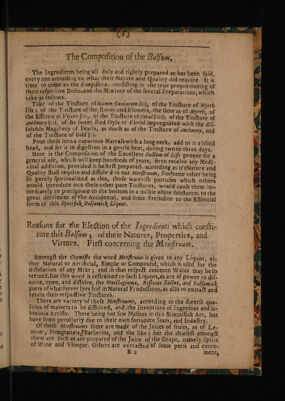The potable balsome of life. Being a collection of the choicest preservatives ... within the three natural families of minerals, vegetables and animals, reduced into such essences and tinctures by the scientifick art of chymie, which constitute a radical and cordial balsamick liquor ... By which the bodies which are in health may be preserved, the growth of distempers intercepted, and diseases already confirmed, totally erradicated / [P. Belon].
