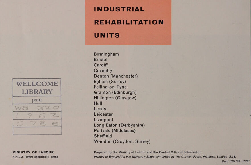 Credit: Every Monday morning... : about 200 men and women start a course at a unit like this : Do YOU need help to regain working fitness? / Prepared by the Ministry of Labour and the Central Office of Information. Source: Wellcome Collection.
