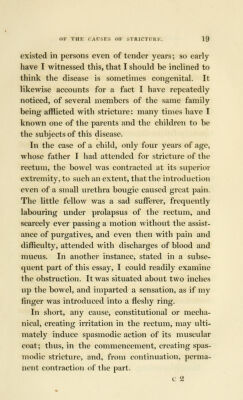Credit: A practical essay on stricture of the rectum : illustrated by cases, showing the connection of that disease with prolapsus of the bowel, piles, fistula, affections of the urinary organs, and of the womb, &c. / by Frederick Salmon. Source: Wellcome Collection.