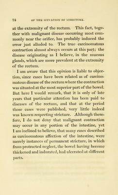 A practical essay on stricture of the rectum : illustrated by cases, showing the connection of that disease with prolapsus of the bowel, piles, fistula, affections of the urinary organs, and of the womb, &c. / by Frederick Salmon.