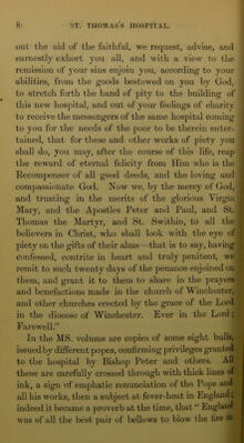 Credit: St. Thomas's Hospital, from its foundation to 1553 : chiefly from a manuscript book in the library of the Earl of Ashburnham, now in the British Museum / by W. Rendle. Source: Wellcome Collection.