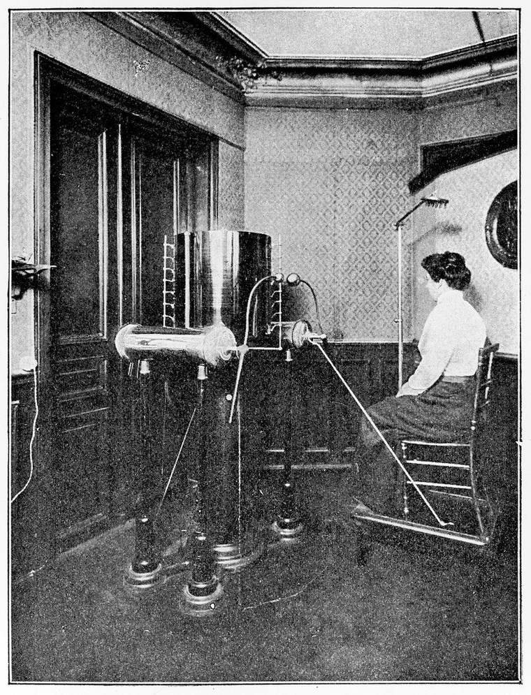 M0014871: Astatic douche from the electrostatic machine of Bonetti. In copyright. Source: Wellcome Collection.