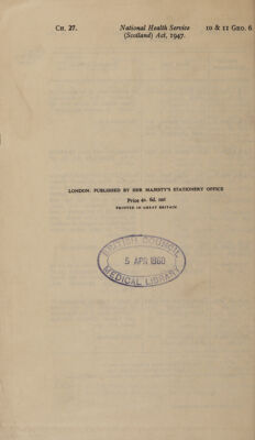 Credit: National Health Service (Scotland) Act, 1947 : 10 & 11 Geo. 6. Ch. 27. Source: Wellcome Collection.