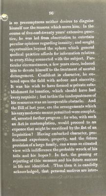 Credit: Cursory remarks on a bill now in the House of Peers for regulating of mad-houses, its probable influence upon the physical and moral condition of the insane, and upon the interests of those concerned in their care and management : with observations on the defects of the present system / by George Man Burrows. Source: Wellcome Collection.