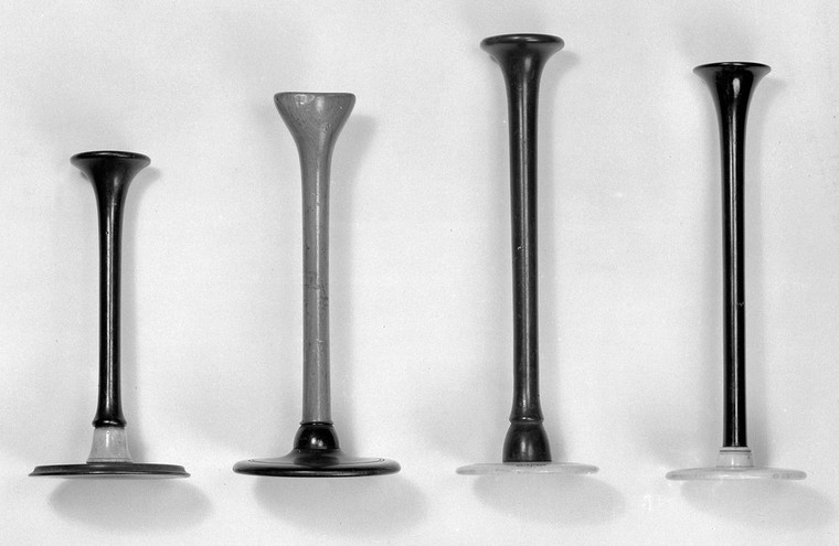 M0014332: Four monaural stethoscopes. Attribution 4.0 International (CC BY 4.0). Source: Wellcome Collection.