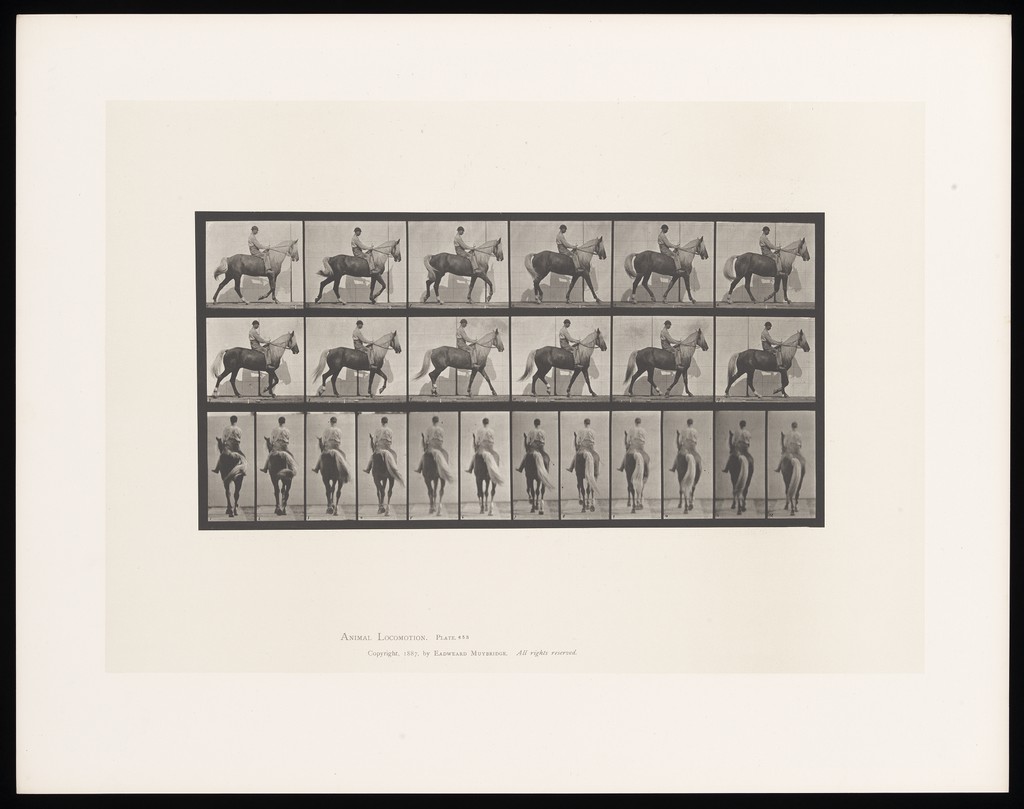Credit: A clothed man riding a saddled horse. Collotype after Eadweard Muybridge, 1887. Source: Wellcome Collection.