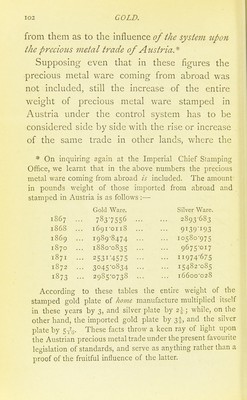 Gold, or, Legal regulations for the standard of gold & silver wares in different countries of the world / translated and abridged from Die gesetzliche Regelung des Feingehaltes von Gold- und Silber-Waaren, von Arthur von Studnitz, by Mrs. Brewer ; with notes and additions by Edwin W. Streeter.
