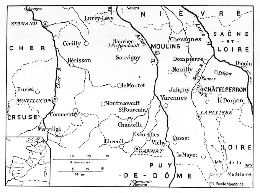 M0015580EA: Illustration of perforated bones and teeth / M0015580EB: Map of the French department Allier