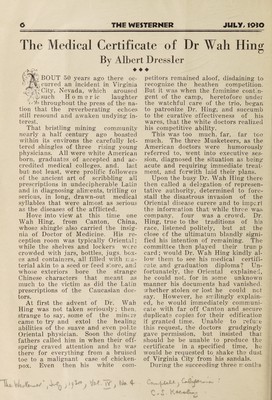 The medical certificate of Dr Wah Hing / by Albert Dressler.