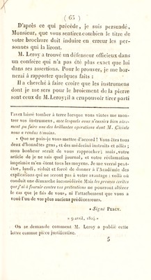 Credit: Lettres sur la lithotritie, ou broiement de la pierre. Dans la vessie / [Civiale (Jean)]. Source: Wellcome Collection.