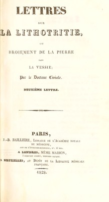 Lettres sur la lithotritie, ou broiement de la pierre. Dans la vessie / [Civiale (Jean)].