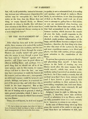 The modern system of farriery, comprehending the present entire improved mode of practice, containing all the most valuable and approved remedies, accurately proportioned, and properly adapted to every disease the horse is incident ; including rules for the management of the healthy horse, as feeding, stabling, grooming, and conditioning / by George Skeavington.