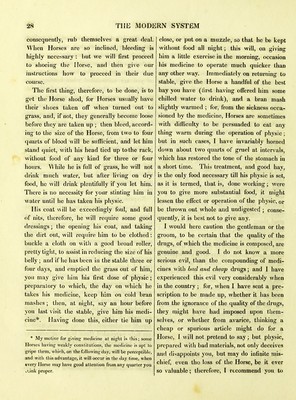 Credit: The modern system of farriery, comprehending the present entire improved mode of practice, containing all the most valuable and approved remedies, accurately proportioned, and properly adapted to every disease the horse is incident ; including rules for the management of the healthy horse, as feeding, stabling, grooming, and conditioning / by George Skeavington. Source: Wellcome Collection.
