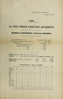 Credit: [Report 1895] / Medical Officer of Health, St Ives (Cornwall) U.D.C. Source: Wellcome Collection.
