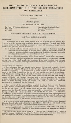 Sixth report from the Select Committee on Estimates : together with the minutes of evidence taken before sub-committee D and appendices, session 1956-1957: Running costs of hospitals.