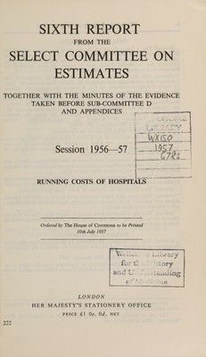 Sixth report from the Select Committee on Estimates : together with the minutes of evidence taken before sub-committee D and appendices, session 1956-1957: Running costs of hospitals.