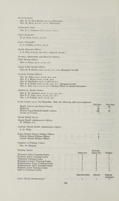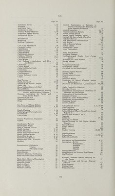 ![Index Page No. ; Page No. Ambulance Service .. 3, 42 I Medical Examination of Entrants to Analgesia , . 22 Course of Training for Teaching and Ante-Natal Care 19 ; to the Teaching Profession .. 89 Antibiotics in Milk .. 62 Medical Inspection .. 68, 76 Artificial Kidney Machines 4, 49 ] Medical Inspection Returns 82-84 Attendants, Home Nursing 28 Mental Health Service 4, 56 Audiometric Service 71 Mental Health Training Centres .. 57 Mentally Ill, Care of and After Care 56 Blind Persons 94 Midwifery Service 4, 22 Brucellosis 62 Milk and Dairies Administration .. 60 Building Programme 68 Milk Bottles .. 62 Milk in Schools Scheme 61, 74 Care of the Mentally 111 56 Mobile Clinics 16 Cervical Cytology , . 3, 18 Mothercraft Classes .. 19 Child Defects 16 Myco Tuberculosis .. 61 Child Guidance , . 5, 68 Child Minders 19 Night Rota Scheme 22 Child Health Centres . . 16 Notifiable Diseases .. 39 Children, ‘At Risk’ .. 4, 16 Notifications and Deaths from Certain Chiropody Service .. 4, 47 Causes 11-12 Churn Rinses 62 Nurseries and Child Minders 19 Civil Defence — Ambulance and First Nurses’ Houses 28 Aid Section , , 43 Cleanliness . . 84 Occupational Therapy 50 Clinics, School 68, 81 Orthopaedic Defects 70 Clubs for Elderly People 93 Out-work for the Handicapped 96 Committees 100 Congenital Defects .. 16 Partially Sighted Persons 94 Convalescence . . 48 Pasveer Ditch 64 County Refresher Course .. 30 Post Graduate Courses 26 Cream 62 1 Preface 3 Premature Births 23 Deaf Persons 96 ! Protection of School Children against Death, Causes of. 11-12 i Tuberculosis .. 73 Deaths of Pre-School Children 17 Provision of Residential Accommodation 93, 96 Defect List. 16 Dental Officer, Report of Chief 72 Radio Control for Midwives 22 Dental Defects 85 Refresher Course 22 Dental Treatment of Expectant and Nursing Registration and Inspection of Homes for Mothers and Pre-School Children .. 3, 19 Disabled and Old Persons 93 Diocesan Association for Family and Registration of Nursing Homes 30 Social Service Report 18 Relaxation Classes .. 19 Diseases of the Skin 84 Report of County Welfare Officer .. 92 Disposable Equipment 23 Residential Accommodation 93, 96 Drugs 46 Rickettsia Burneti 61 Road Accidents 74 Ear, Nose and Throat Defects Environmental Health Services 84 4, 60 School Health Service .. .. 3, School Hygiene 5, 68-69 68 Family Planning Flashing Light Warning System Fluoridation .. Fresh Cream .. * • 3, 18 93 4, 64 62 School Meals Service School Medical Officers: Notes from Annual Reports of .. Severely Sub-Normal, Care of Sewerage 74 77 57 63 General Practitioner Attachment .. Gypsies 26 64 Stillbirths Smoking and Health.. .. Special Housing for Old People—Warden 17, 23 46 Handicapped Persons Handicapped Pupils Hard of Hearing Persons .. 95 74 , 96 1 Schemes Special Schools Speech Defects QtofF 92 75 75 lOA Health Centres Health Education 3,14 ; 4,46 ! Student Training .. .. .. ..22,26,30 Health Education in Schools Health Visiting Service Home Help Service .. Home Nursing Service 71 ! 4,26 : 4, 54 : 4, 28 1 Training Centres .. .. .. .. 57 Tuberculosis .. .. .. ..51,73,86 Tuberculosis Deaths .. .. .. 51 Hospital and Hire Car Service Housing 42 ! 65 Vaccination and Immunisation Vaccination—B.C.G. 4, 32 73 Immunisation—Diphtheria .. Poliomyelitis .. 33 32 Smallpox 32 Tetanus 33 Anthrax 33 Whooping Cough 33 Measles 32 Incontinence Pads 49 Venereal Diseases 40 Infant Deaths 17 > Visual Defects and External Eye Disease .. 84 Infectious Diseases, Notification .. 39 Vital Statistics 8-9 Isobel Morcom Medal and Prize .. Marie Curie Memorial Foundation 28 1 Warden’s Schemes—Special Housing for 28 ! Old People 92 Marriage Guidance .. 18 Water, Sewerage and Sewage Disposal Maternal Deaths 23 Schemes 63 Meals in Clubs 93 Water Supplies 64 Meals on Wheels 93 Welfare Foods 30 Medical Comforts . . 49 Welfare Services 92](https://iiif.wellcomecollection.org/image/b30292980_0114.jp2/full/800%2C/0/default.jpg)