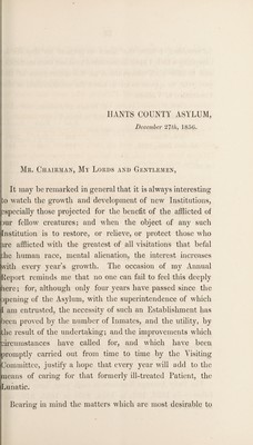 Report of the Committee of Visitors of the County Lunatic Asylum, at the Epiphany Sessions, 1857 / [Hants County Lunatic Asylum].