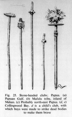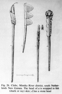 M0019312: Two illustrations of clubs from the Solomon Islands and Mimika River region of New Guinea