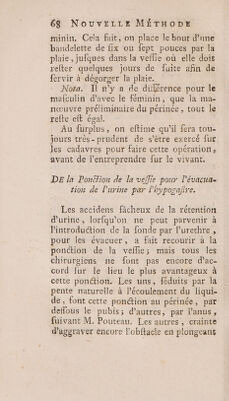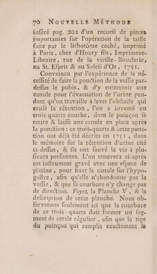 Nouvelle méthode d'extraire la pierre de la vessie urinaire par-dessus le pubis, qu'on nomme vulgairement le haut appareil dans l'un & hautre sexe, sans le secours dáucun fluide retunu ni forcé dans la vessie; suivi de lánalyse des expériences de l'Academie Royale de Chirugie de Paris, sur léxtraction de la pierre de la vessie urinaire de lhómme, pardessus le pubis / [Par Jean B. Baseilhac Anon].