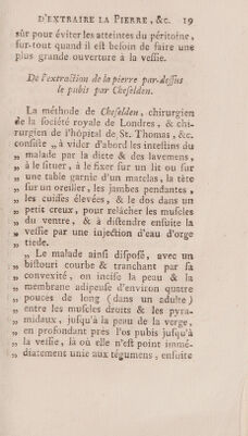 Credit: Nouvelle méthode d'extraire la pierre de la vessie urinaire par-dessus le pubis, qu'on nomme vulgairement le haut appareil dans l'un & hautre sexe, sans le secours dáucun fluide retunu ni forcé dans la vessie; suivi de lánalyse des expériences de l'Academie Royale de Chirugie de Paris, sur léxtraction de la pierre de la vessie urinaire de lhómme, pardessus le pubis / [Par Jean B. Baseilhac Anon]. Source: Wellcome Collection.