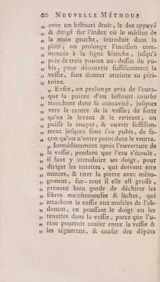 Nouvelle méthode d'extraire la pierre de la vessie urinaire par-dessus le pubis, qu'on nomme vulgairement le haut appareil dans l'un & hautre sexe, sans le secours dáucun fluide retunu ni forcé dans la vessie; suivi de lánalyse des expériences de l'Academie Royale de Chirugie de Paris, sur léxtraction de la pierre de la vessie urinaire de lhómme, pardessus le pubis / [Par Jean B. Baseilhac Anon].