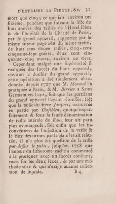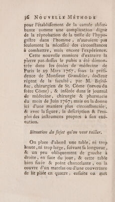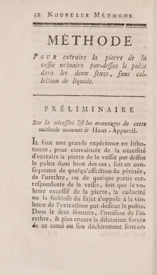Nouvelle méthode d'extraire la pierre de la vessie urinaire par-dessus le pubis, qu'on nomme vulgairement le haut appareil dans l'un & hautre sexe, sans le secours dáucun fluide retunu ni forcé dans la vessie; suivi de lánalyse des expériences de l'Academie Royale de Chirugie de Paris, sur léxtraction de la pierre de la vessie urinaire de lhómme, pardessus le pubis / [Par Jean B. Baseilhac Anon].