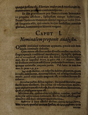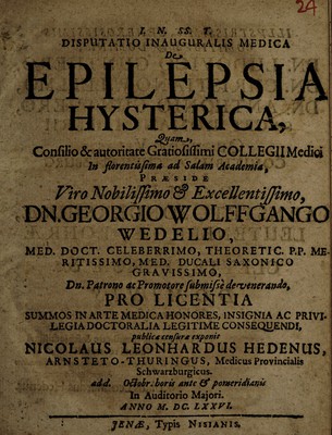 Credit: Dissertatio inauguralis medica de epilepsia hysterica / [Nicolaus Leonhard Hedenus]. Source: Wellcome Collection.