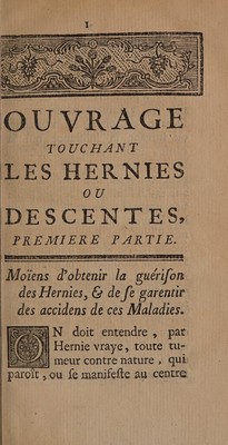 Credit: Ouvrage touchant les hernies, ou déscentes, divisé en deux parties / Par M. Dejean. Source: Wellcome Collection.