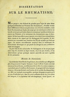 Dissertation sur le rhumatisme : présentée et soutenue à l'Ecole spéciale de médecine de Strasbourg, le 3 vendémiaire an XII ... / par Jos. Theod. Bechet ...