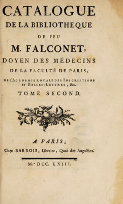 Credit: Catalogue de la bibliothèque de feu M. Falconet. Source: Wellcome Collection.