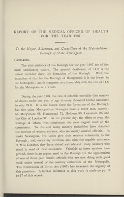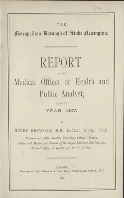 [Report of the Medical Officer of Health for Stoke Newington, The Metropolitan Borough].