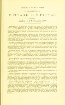 Cottage hospitals : general, fever, and convalescent their progress, management and work with an alphabetical list of every cottage hospital at present opened and chapters on mortuaries, the relative mortality of large and small hospitals and cottage hospitals in America / by Henry C. Burdett.