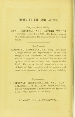 Credit: Cottage hospitals : general, fever, and convalescent their progress, management and work with an alphabetical list of every cottage hospital at present opened and chapters on mortuaries, the relative mortality of large and small hospitals and cottage hospitals in America / by Henry C. Burdett. Source: Wellcome Collection.